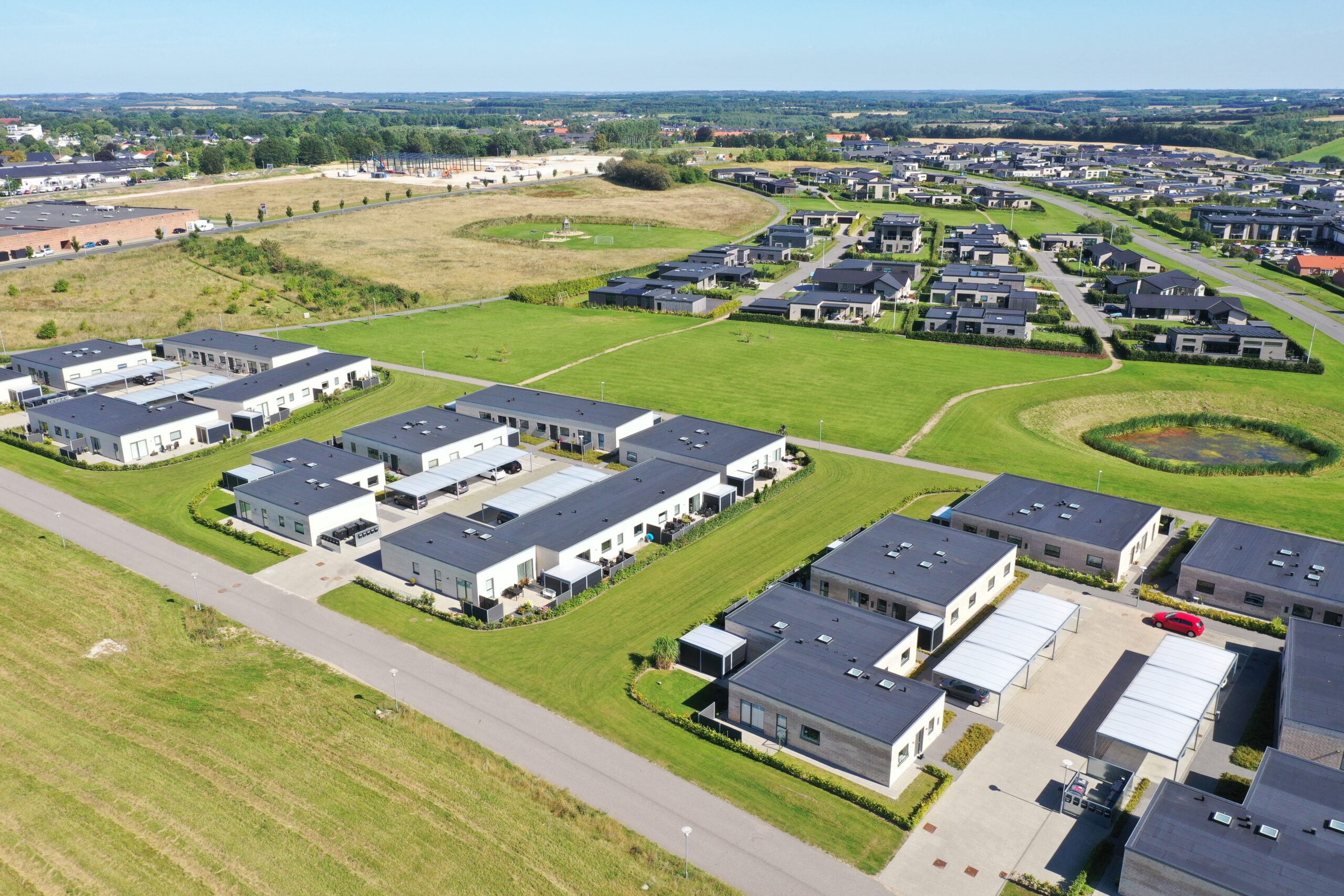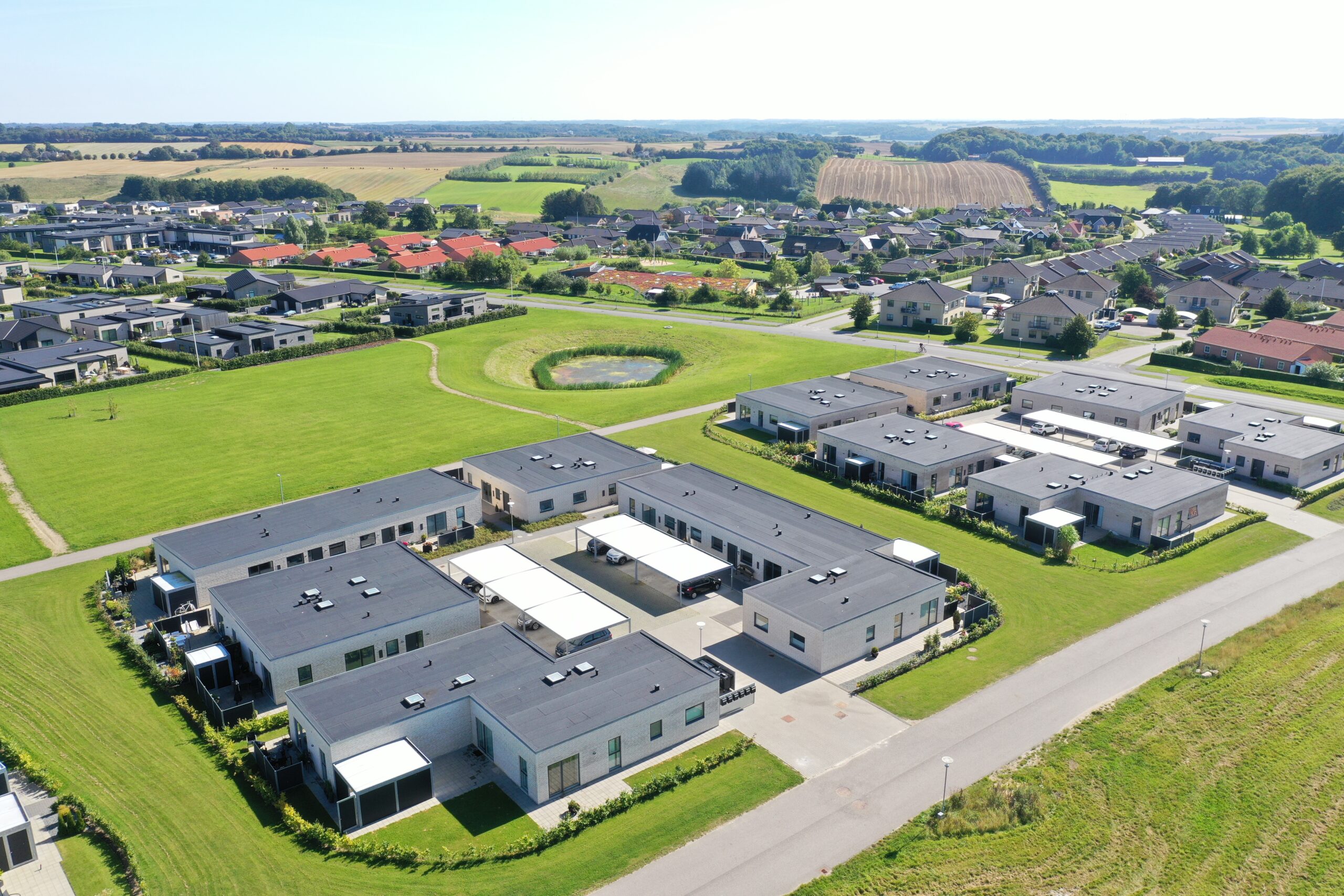 På Asmild Mark ligger 33 attraktive etplans rækkehuse til leje i et naturskønt og roligt område tæt på Viborg centrum. Boligerne henvender sig til både familier og par, der ønsker et hjem med god komfort og praktiske løsninger. Hvert rækkehus har rummelige værelser, åbent køkken/alrum og stue med direkte udgang til terrasse og fællesarealer, samt privat carport, skur og have. Her får du en fredelig beliggenhed med kort afstand til indkøb, skoler og institutioner – ideelt til en hverdag med tryghed og overskuelighed.